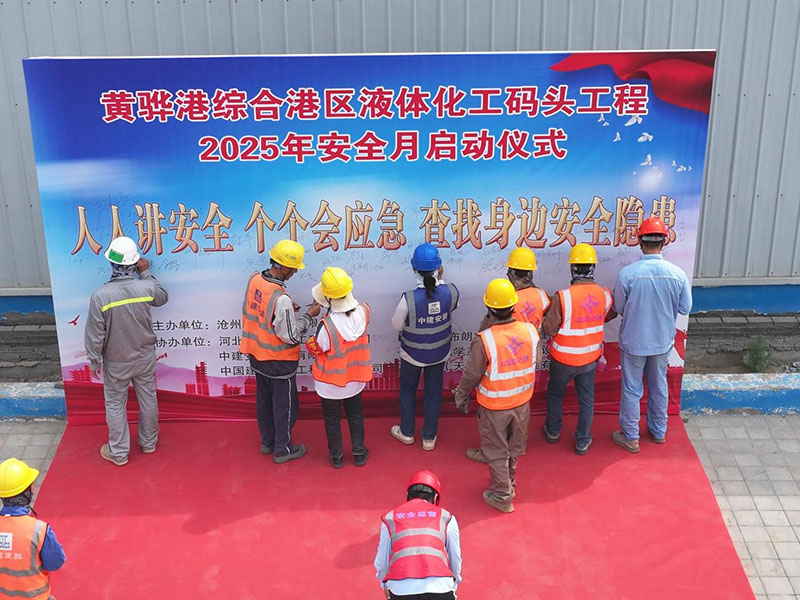 2025年6月1日,黃驊港綜合港區(qū)液體化工碼頭工程2025年安全月啟動(dòng)儀式在項(xiàng)目現(xiàn)場(chǎng)隆重舉行。滄州森旭港務(wù)有限公司、施工單位、監(jiān)理單位代表齊聚一堂,共同拉開安全月活動(dòng)的序幕。
