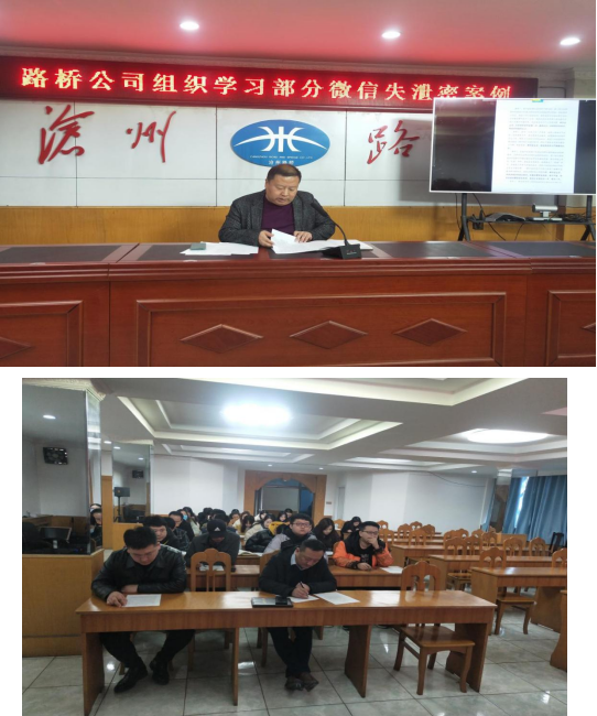 2月23日上午,滄州路橋工程有限責(zé)任公司為貫徹落實市委保密委員會辦公室、市國家保密局關(guān)于加強涉密文件保密管理,學(xué)習(xí)部分微信失泄密案例情況的相關(guān)通知,健全完善公司保密工作制度和個人保密承諾制度,加強并規(guī)范公司涉密文件保密管理,組織全體員工進行微信失泄密案例的相關(guān)學(xué)習(xí)。