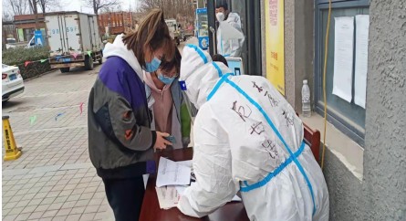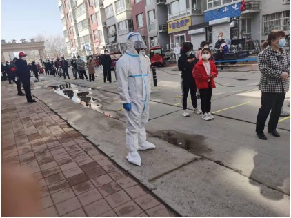 身穿防護(hù)服、正在為社區(qū)居民登記核對(duì)信息的志愿者是滄州開發(fā)區(qū)站黨員先鋒范世潔。收到抗疫召集令后,她將女兒托付給獨(dú)自在家的老人,連續(xù)多日在戶外進(jìn)行志愿服務(wù)。近兩日氣溫驟降,狂風(fēng)肆虐,春寒料峭的雨雪中,瘦小的她手指早已凍得發(fā)僵,但她依然堅(jiān)守在運(yùn)河區(qū)小王莊鎮(zhèn)小孔辛莊核酸檢測(cè)點(diǎn),為排隊(duì)核酸的居民進(jìn)行登記、測(cè)溫、記錄,協(xié)助醫(yī)護(hù)人員維持秩序,確保社區(qū)居民盡早盡快完成核酸采集。