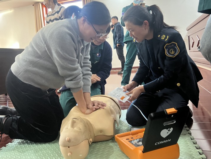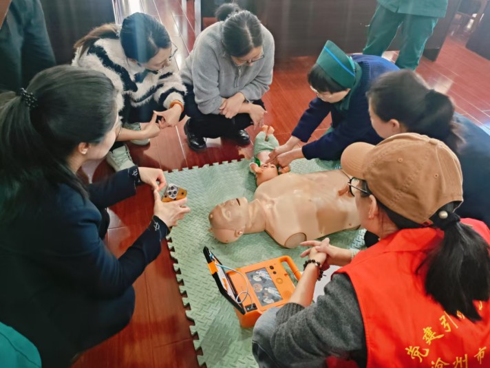 為進(jìn)一步提升集團(tuán)的應(yīng)急救援能力,集團(tuán)總部二樓安裝了自動(dòng)體外除顫器(AED)?;顒?dòng)的下半程,專業(yè)人員從設(shè)備的基本構(gòu)造、功能原理,到AED的開(kāi)啟方法、電極片的正確粘貼位置,以及如何根據(jù)語(yǔ)音提示進(jìn)行電擊操作等關(guān)鍵環(huán)節(jié)為職工們?cè)敿?xì)講解了AED操作流程。