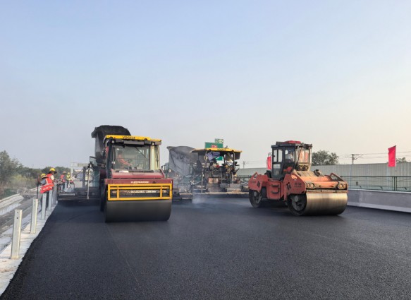 榮烏高速滄州段改擴(kuò)建工程是河北省重點(diǎn)交通基礎(chǔ)設(shè)施工程,對(duì)提升京津冀地區(qū)交通網(wǎng)絡(luò)通行能力,促進(jìn)區(qū)域經(jīng)濟(jì)協(xié)同發(fā)展具有重要意義。海興段主線上面層攤鋪的順利完成,為后續(xù)標(biāo)志標(biāo)線、交安設(shè)施等附屬工程施工創(chuàng)造了良好條件。