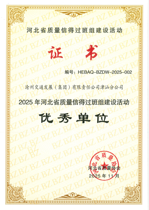 近日,津汕分公司在河北省交通運輸行業(yè)質(zhì)量管理評選中脫穎而出,同時榮獲“2025年度質(zhì)量管理小組活動優(yōu)秀單位”與“質(zhì)量信得過班組建設(shè)優(yōu)秀單位”兩項省級榮譽,標志著公司在精細化運營和智慧養(yǎng)護方面的卓越成效獲得權(quán)威認可。
