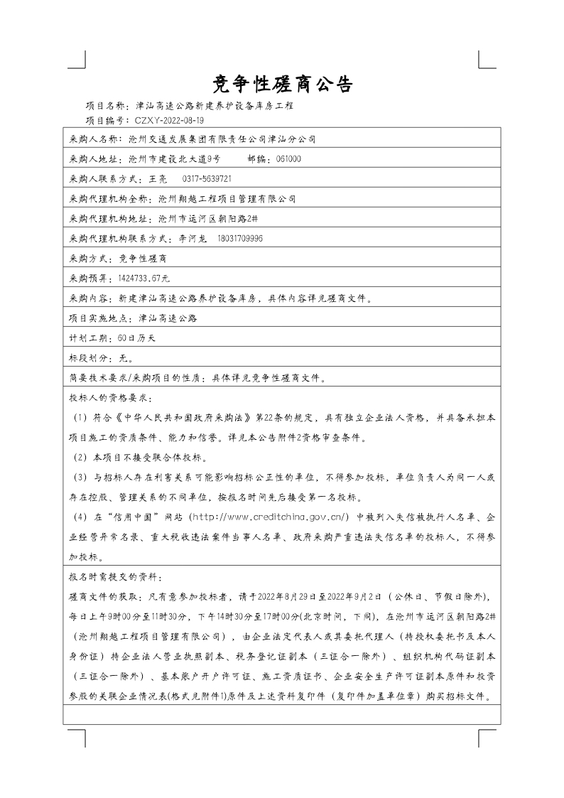 新建養(yǎng)護(hù)設(shè)備庫(kù)房競(jìng)爭(zhēng)性磋商公告