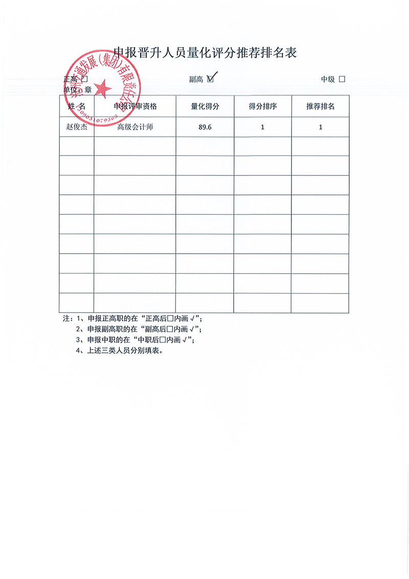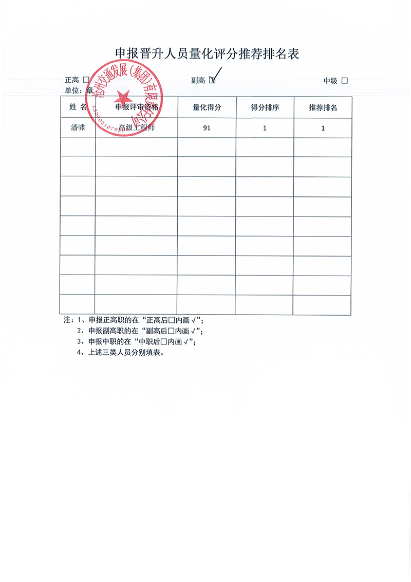 交發(fā)集團(tuán)申報(bào)晉升人員量化評(píng)分推薦排名表