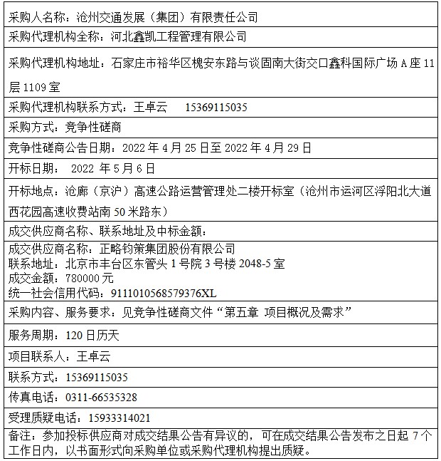 滄州交通發(fā)展(集團(tuán))有限公司企業(yè)內(nèi)部控制及風(fēng)險(xiǎn)控制咨詢成交結(jié)果公告