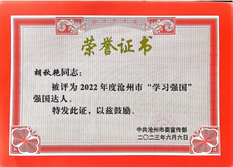 近日,在市委宣傳部開展的2022年度滄州市“學(xué)習(xí)強(qiáng)國”強(qiáng)國達(dá)人評選活動(dòng)中,實(shí)業(yè)公司焦偉林、胡秋艷和公交公司胡振才榮獲“學(xué)習(xí)強(qiáng)國”學(xué)習(xí)達(dá)人,津汕分公司張靜榮獲“學(xué)習(xí)強(qiáng)國”供稿工作先進(jìn)個(gè)人。