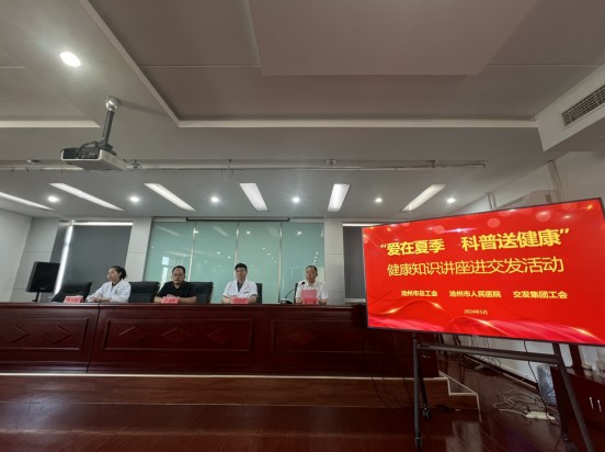為全面貫徹落實(shí)黨的二十大關(guān)于推進(jìn)健康中國(guó)建設(shè)的重要部署,提升廣大職工的健康和保健意識(shí),5月31日下午,滄州交發(fā)集團(tuán)工會(huì)聯(lián)合滄州市總工會(huì)和滄州市人民醫(yī)院,開(kāi)展“愛(ài)在夏季 科普送健康”知識(shí)講座進(jìn)交發(fā)活動(dòng)。集團(tuán)機(jī)關(guān)、各分(子)公司50余名職工代表參加了活動(dòng)。滄州市人民醫(yī)院健康管理中心主任李德鵬出席活動(dòng)。