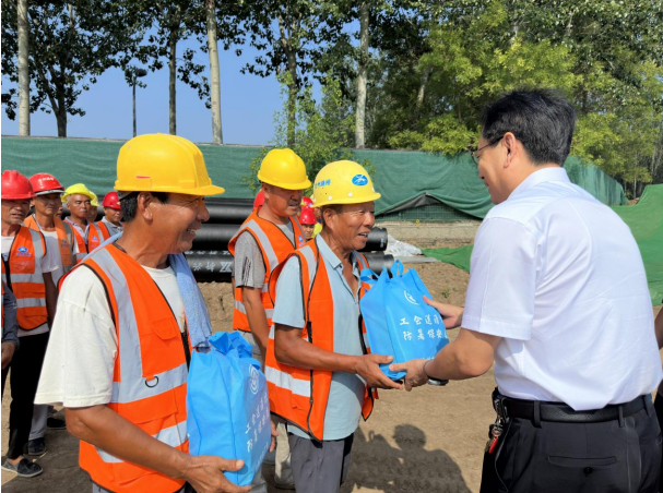 8月6日上午,滄州市總工會黨組成員、經審委主任王增光,滄州市總工會法工部部長陳磊一行來到城鄉(xiāng)公司守真路施工現場走訪慰問,為在炎炎夏日中堅守崗位的一線工人送去防暑降溫物品,把關心關懷送到廣大工人的心坎上。集團黨委副書記、工會主席楊鴻博,集團黨委辦公室負責人王健陪同。
